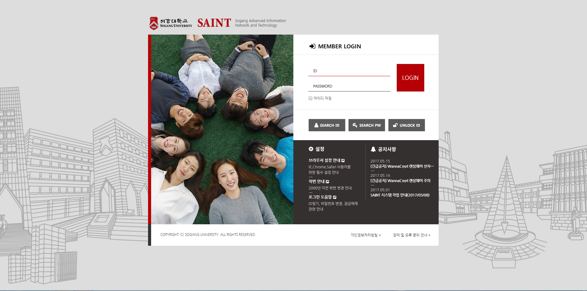 개인신상변경은 본인이 직접 SAINT에서 변경, 수정하여야 하며, 주소 등이 변경된